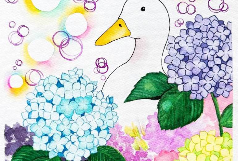 透明水彩・オイルパステル・デジタル・書などを作品によって使い分け、絵柄も変わるカメレオンです。