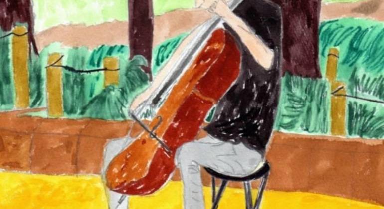 路上のチェロ弾き