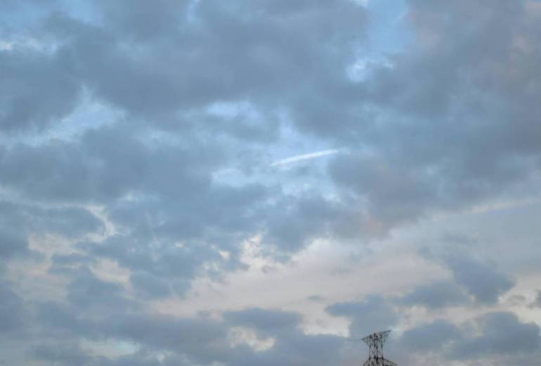 赤と青の市松模様のある机に載る花瓶の向日葵