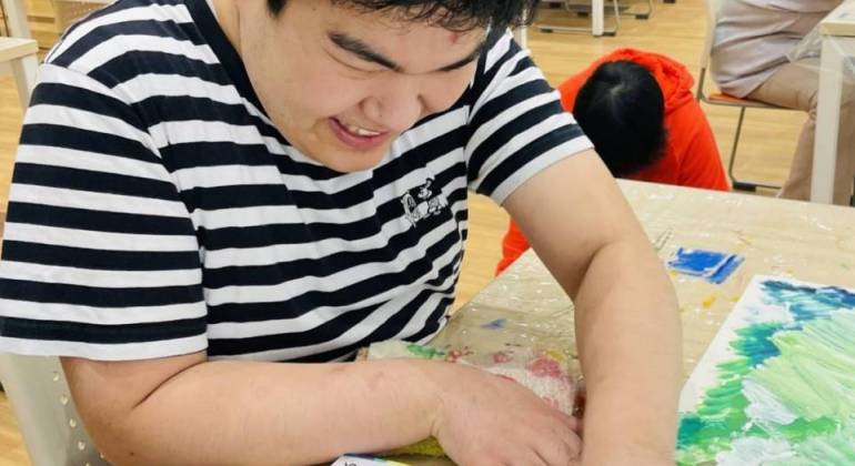 筆や歯ブラシ、指を使って、気持ちの赴くままに描いていきます。力強く、ダイナミックな絵をお届けします。