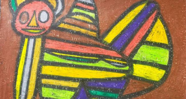 主にクレヨンやクーピーペンシルを使用して描いた絵です。