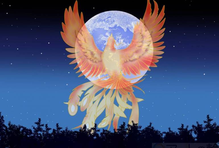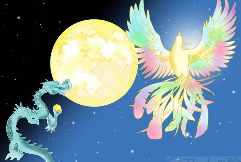 神聖な鳥 鳳凰と月