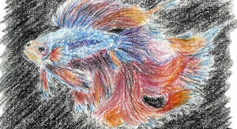クレヨンのみで風景画、静物画、名画模写などを描いています。 作品によっては鉛筆を使用しています。