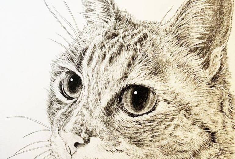 動物をテーマに、主に猫の白黒ペン画を描いております。ほか犬、フクロウ、ぬいぐるみなど、毛のあるものをよく描きます。シンプルな画材を通じ、動物の温かみ、生き生きとした様が紙の上に現れまた見いだされることを目指しています。また、貿易会社にて翻訳者も務めております。