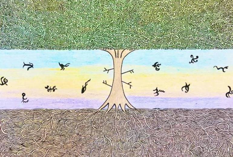 不登校と精神疾患を経験し、抽象画や小説を創作しています。