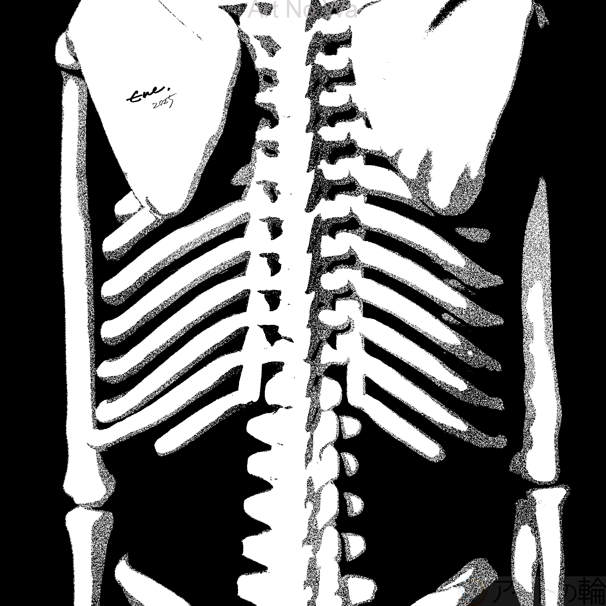 ハッチング画や点描画、モノクロの作品が多めです。