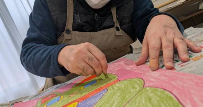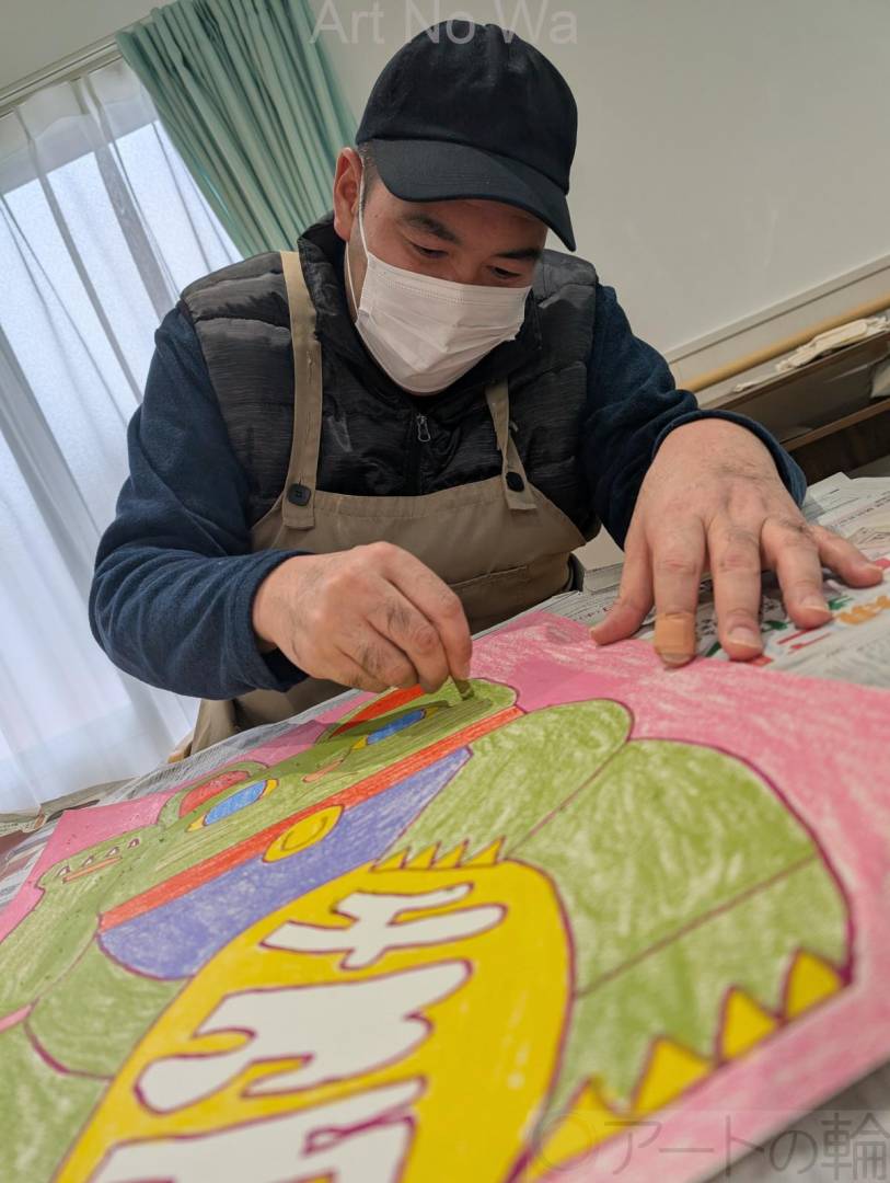 作品は本人が大好きな動物を題材にしたものが多いのですが、静物も得意としており、有機的な線で描かれた人工物などはどこかオモシロくてオシャレな印象さえ受けます。自閉症のスズキさんにとって、絵を描くことは自分と社会とをつなぐ言葉に頼らなくてもいい大切なチャンネルなのかもしれません。