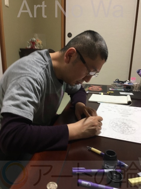30歳の時にうつ病と診断されました。子供の時から絵や漫画を描くことが好きで、今もマイペースですが作品を描き続けています。現在、主に取り組んでいる作品は神様や仏様の姿を描くという連作です。絵を書くこと以外にもギターやベースを弾くことも好きです。