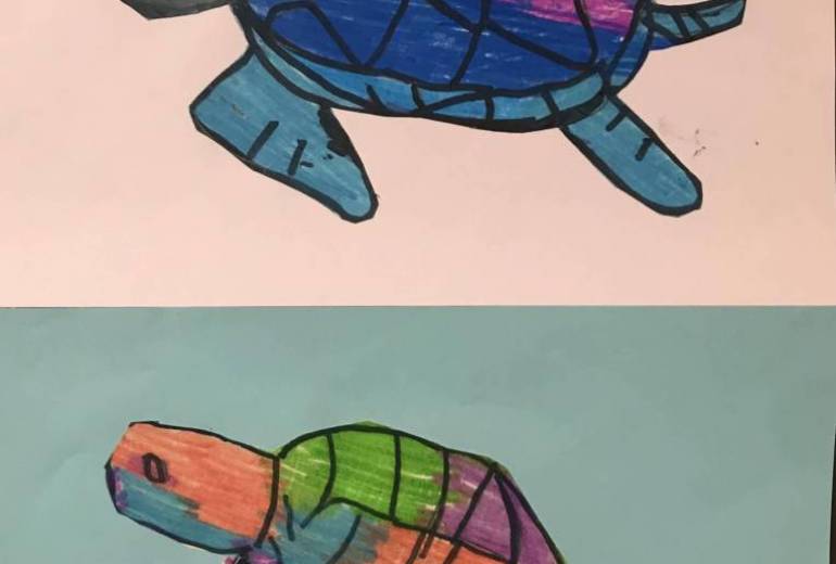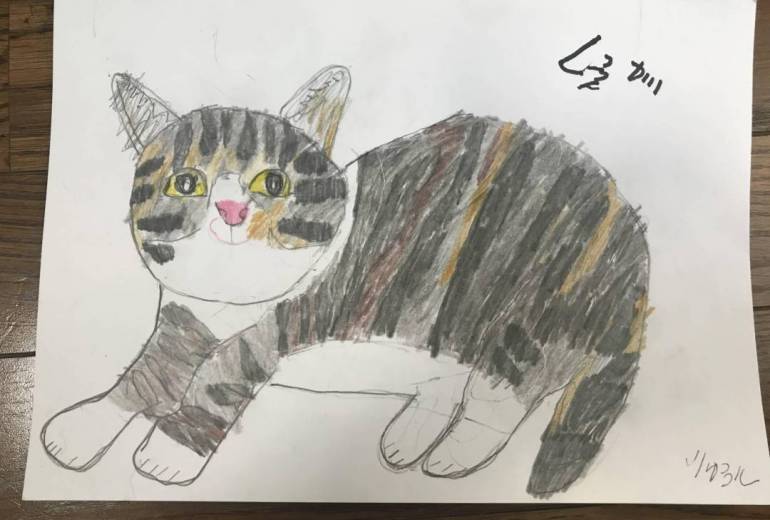 自分から絵を描くことはしませんが、母が描いた物を真似して描いています。