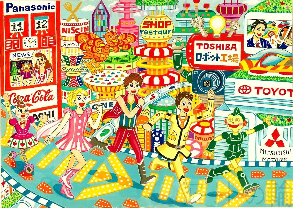 2018年★「新生紙パルプ商事㈱」2019年度卓上カレンダー「11月」に「秋」採用。★「ユニオンツール㈱」株主通信の表紙に「Fruit tree」採用。★「イオン㈱」ポストカードデザインに「夏」が採用。★「㈱マイプリント」2019年度年賀状に「Fruit tree」採用。★「大建工業㈱」2019年度カレンダー「3月」に「HAPPY DAY!」採用。★「ネットトレインサービス㈱」から、作品「HAPPY DAY!」の複製絵画を購入頂く。★「サイバーダイン㈱」とパラリンアート共催の「人とロボットの未来コンペ」で「人とロボットが共生する未来」が入賞。★「パークホテル東京」で行われた「パラリンアート原画販売展示会」で作品「ボクはおもちゃの世界の住人」を数か月間、出品展示。 ★東京都の発達障害者支援機関主催の研修会で、障害当事者代表としてスピーチする。 〇会社のポスターのイラストを制作。