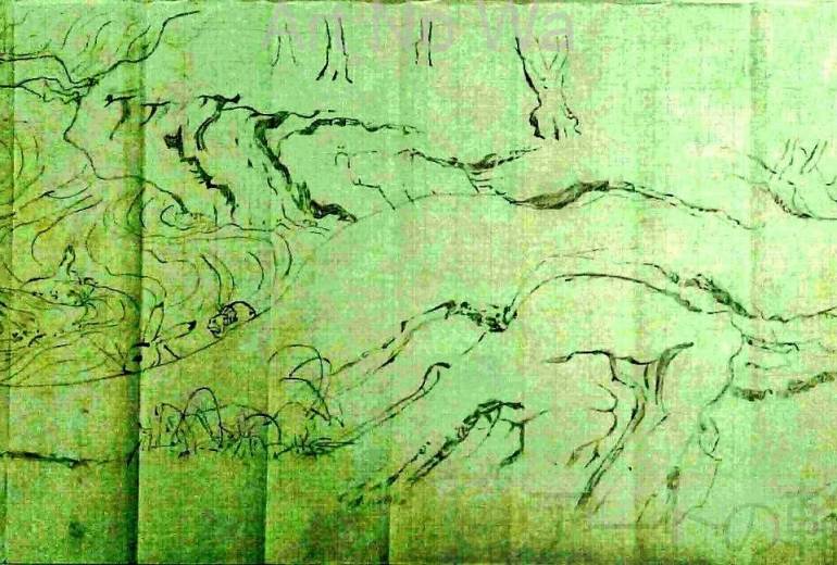 主な制作ジャンルは、古典日本画の模写です。中でも、絵巻物等の巨大な作品を丸ごと模写する事を手掛けていた時期が有り、これまでに、「百鬼夜行絵巻(全長約5メートル)」、「鳥獣戯画甲巻(全長役12メートル)」、を、鉛筆一本で、トレース(なぞり描き)描き一切ナシで、一から全て写した経験があります。