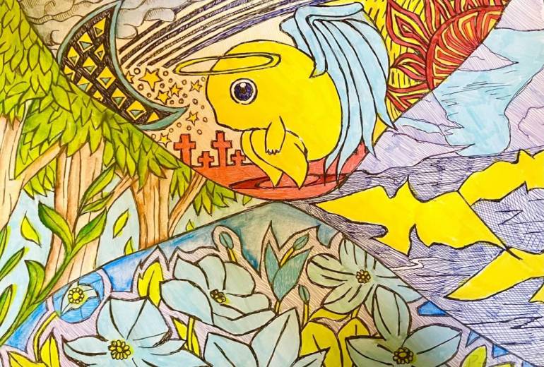 港区新国立美術館にて絵の展示をする。現在療養しながら、絵を描く事に専念している。
