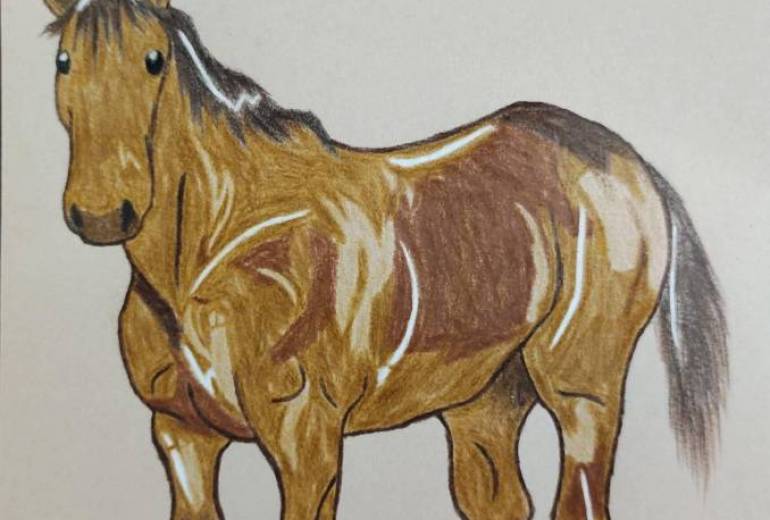 独特の色鉛筆のタッチと鮮やかな色使いで描く